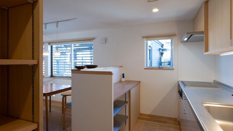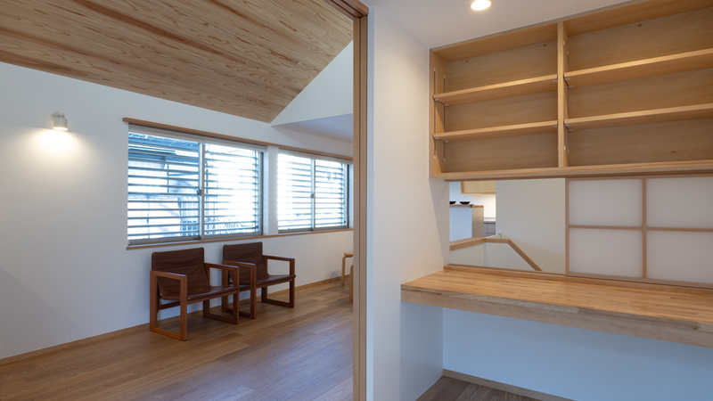 建て主は高齢のご両親と共働きの娘さん夫婦、近くには孫夫婦も住んでいます。日々の居心地はもちろんのこと、世代で住み繋げていけることや、小さなお店もできる予備配管など、定年後の暮らしや将来の介護も見据えて話し合いを重ねました。