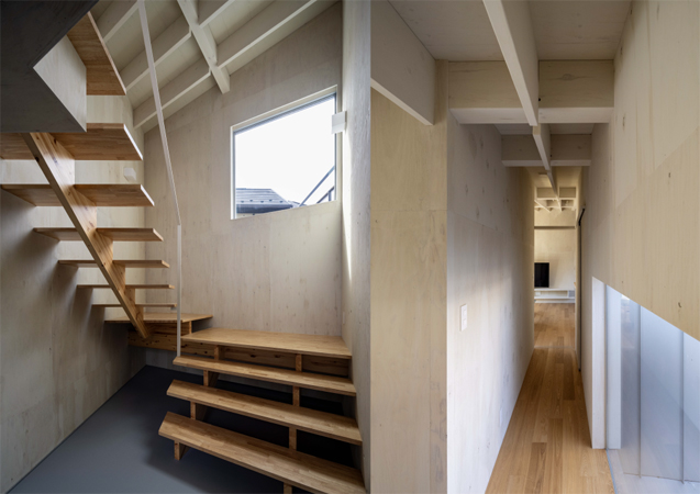この住宅では,あえて北側にこの家の庭としてのオープンエリアをプログラムし,直射光に頼らない柔らかい光に包まれる住環境を提案しています.