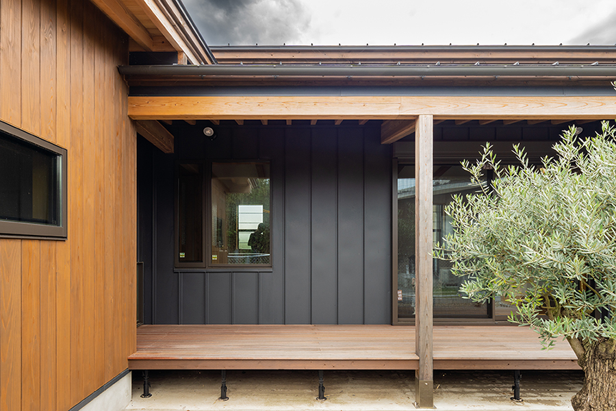 東京でずっと忙しく働いてきた住み手のセカンドハウス計画。チョット立ち止まって暮らしを考えてみたときに、もうそろそろ多忙な暮らしを離れる時間を取ろうと、東京の拠点から車で1時間くらいで行ける場所に土地を求めた。海からも近いので二階建てにして海を眺めるという形も考慮に入れたが、都心の集合住宅とは違うゆったりとした時間が感じられるような大らかな平屋にした。折角のんびり過ごすために行くので、広い敷地は行く度に手入れをするような時間を割きたくないという理由で、住み手の大事な家族であるMochiと言う名前のフレンチブルドッグが庭で安心して走れるようなdogrunを敷地内に設えたり、古木のオリーブのみ観るようなドライガーデンにした。今回は室内環境を床下冷暖房で計画して、東京から行くときに遠隔操作できるようにしている。伸びやかなPlanとともに気持ちの良い空気環境は、「あー来て良かった」ってホッと出来る場所が成立するための大きな要因になっている。館山方面で設計事務所の住宅経験のある施工者が居なくて、有能な工務店に巡り合うのに非常に苦労した。幸い家づくりの会の仲間の伝手で、非常に良いチームを作ることが出来て結果住み手に喜んでもらえる住宅になった。